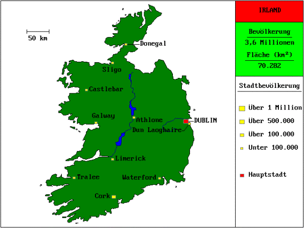 Erfreulich haben sich auch die Preise entwickelt. Bei wesentlich günstigerem Umrechnungskurs liegen die Preise in irischen Pfund im Schnitt unter denen, wie wir sie in England in Kauf nehmen mußten. Am Auffälligsten ist es beim Benzin, das in Irland bei 0,6 Pfund liegt (Normalbenzin, 95 Oktan) - aber wohlgemerkt in irischen Pfund. Für die Übernachtung auf dem Campingplatz habe ich - wie gestern auch - 8,00 Pfund gezahlt. Aber wohlgemerkt auch hier: Irische Pfund. Und: bei einer Lage und Ausstattung, die sich mit dem gestrigen Platz nicht vergleichen läßt. Hoffentlich halten die angenehmen Überraschungen noch eine Weile an, wir hatten ja schließlich schon genug Pech auf Urlaubsfahrten.