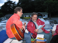 Es ist jetzt 23:30 und ich muss wohl meinen vorerst letzten Eintrag in dieses Tagebuch vornehmen. Hab' gerade meinen Wecker auf 5:00 Uhr gestellt, damit wir morgen früh rechtzeitig aus den Federn kommen. Haben den Abend gemütlich an Bord verbracht. Es war so angenehm warm, so dass wir nicht - wie sonst - im Salon saßen, sondern - einen Stock höher - auf der Fly-Bridge. Habe versucht, mit der Gitarre noch ein wenig die irische Stimmung zu verstärken. Gesungen wurde allerdings nicht mehr viel, mehr geredet. Alles riecht schon irgendwie nach Abschied. Macht nichts, Hintergrundmusik ist ja auch ganz nett. Mir hat's gefallen, Gitarre zu spielen, zu singen und dabei auf Lough Derg hinaus zu schauen, während die Sonne langsam versinkt und der Mond aufgeht. Die Flasche Bushmills ist schon wieder all und auch die Guinness-Vorräte gehen langsam zur Neige. Ich packe jetzt dieses Tagebuch ein und rauche dann noch einen Zigarillo. Mal sehen, wann ich die nächste Gelegenheit finde, den Bericht fortzusetzen.