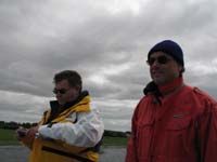 Angus, der Boss von Shannon Castle Line, weist uns in die Geheimnisse der Shannon-Schifffahrt und die des Bootes ein. Unser Schiff heißt übrigens Dromoland Castle, hat ein Gewicht von 16 t und ist mit sechs Personen "gut" besetzt. Zur Not können auch 8 Personen darauf wohnen, empfehlen würde ich das aber niemandem. Wir erhalten auch ein paar Tipps bezüglich Ortschaften, Sehenswürdigkeiten und der lokalen Pubwelt: "...J.J.Hough's in Banagher, Good Pub with lots of fun, but not very clean. Don't wear white trousers, they won't stay white. And handle the Irisch with care, especially when the night is getting later...". Die Klosterruine Clonmacnoise liegt ebenso auf der Route. |