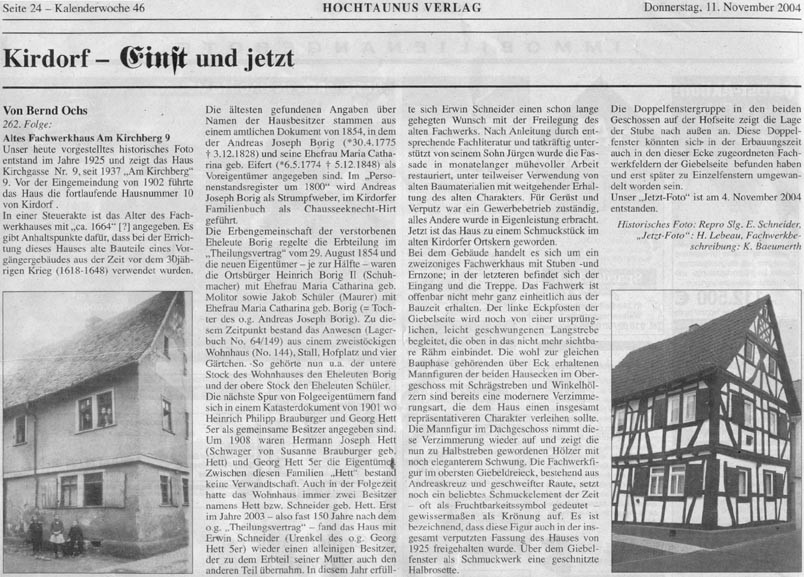 interessieren (website unser kirdorf). Zum zweiten wohnt heute in Haus nr. 28